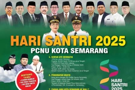 Tasyakuran Hari Santri 2025 akan digelar Selasa (21/10) pukul 19.00 diawali shalat Isa berjamaah di Gedung Baru Kantor PCNU Jalan Puspogiwang I No. 47 Semarang.