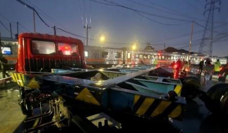 Sementara itu, petugas masih berupaya mengevakuasi kereta dan truk yang terlibat kecelakaan.