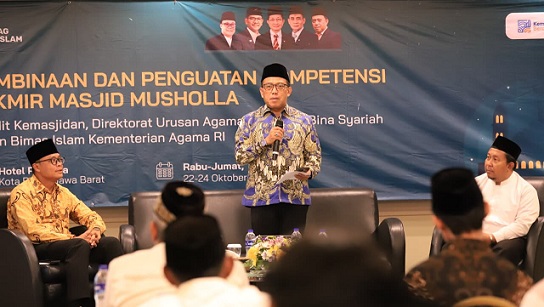 BOGOR (Santrindalan.id) – Kementerian Agama (Kemenag) mendorong para takmir agar memperluas fungsi masjid menjadi wadah jaminan sosial bagi masyarakat. Hal itu disampaikan Direktur Urusan Agama Islam dan Bina Syariah, Arsad Hidayat, saat membuka kegiatan Pembinaan dan Penguatan Kompetensi Takmir Masjid dan Musala di Bogor, Rabu (22/10/2025).